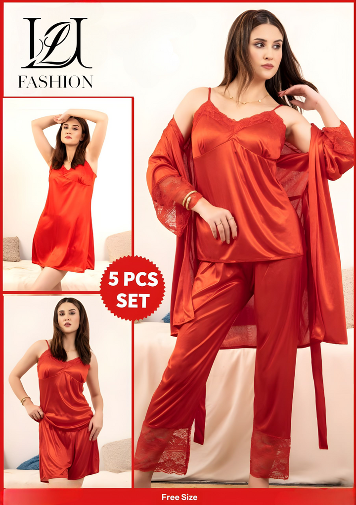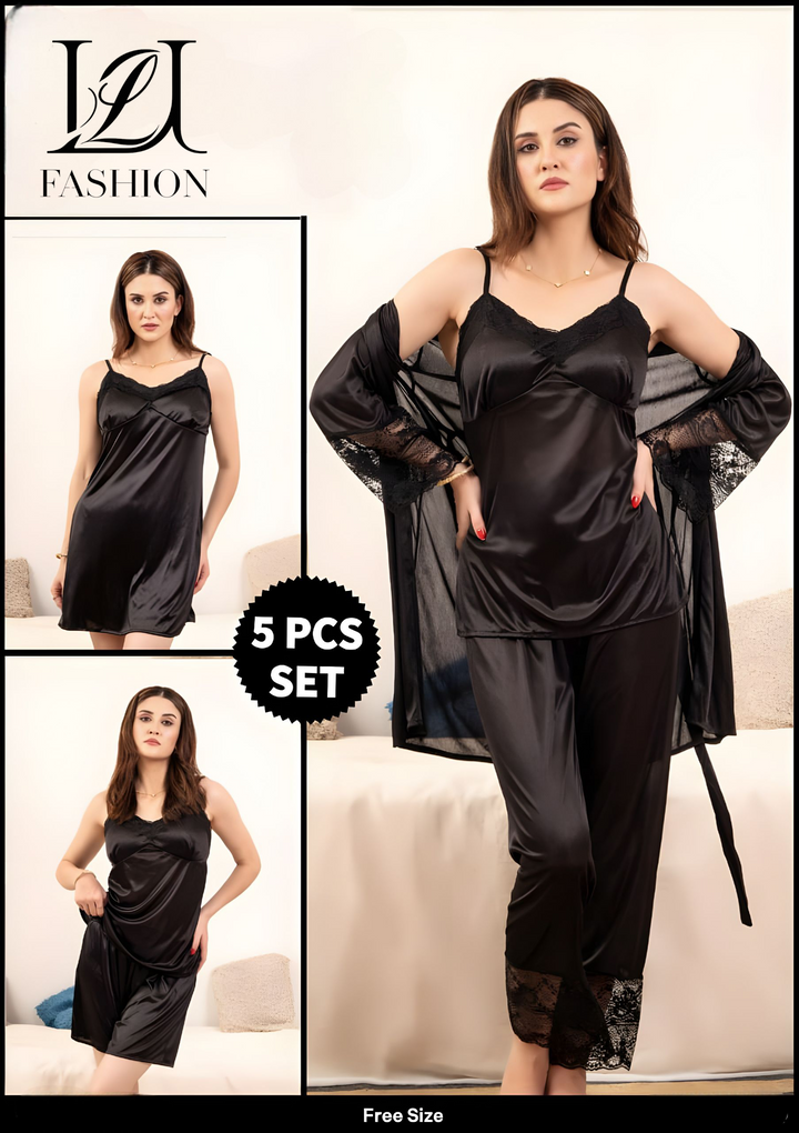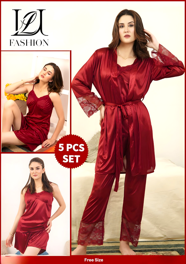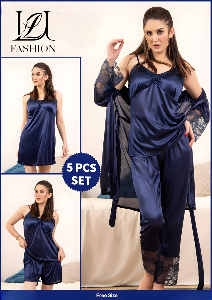 Experience unmatched comfort and elegance with this Luxury 5-Piece Pajama Set. Crafted from premium, breathable fabrics, it offers a soft touch against the skin and ensures all-night comfort. The set includes carefully designed pieces that combine style and functionality, making it ideal for restful sleep or relaxed lounging. Its refined fit and quality materials reflect expert craftsmanship, providing durability alongside a sophisticated look. Elevate your loungewear collection with this essential set tailored for those who appreciate both luxury and practicality.