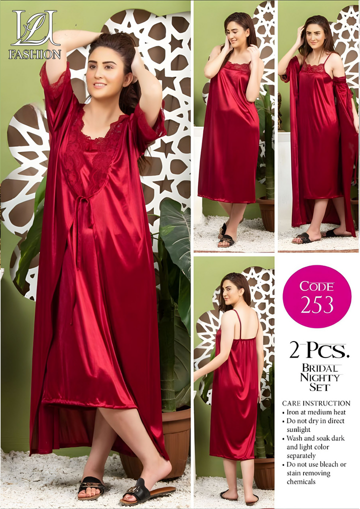 Experience elegance and comfort with this Luxury Bridal Nighty 2-Piece Pajama Set, designed to enhance your special moments. Crafted with premium fabrics, this set combines a delicate nighty and matching pajama bottoms for a harmonious blend of softness and sophistication. Perfectly tailored for a flattering fit, it offers breathable comfort throughout the night while maintaining a refined, luxurious appearance. Ideal for brides seeking both beauty and ease, this ensemble adds a touch of graceful charm to your bridal wardrobe.
