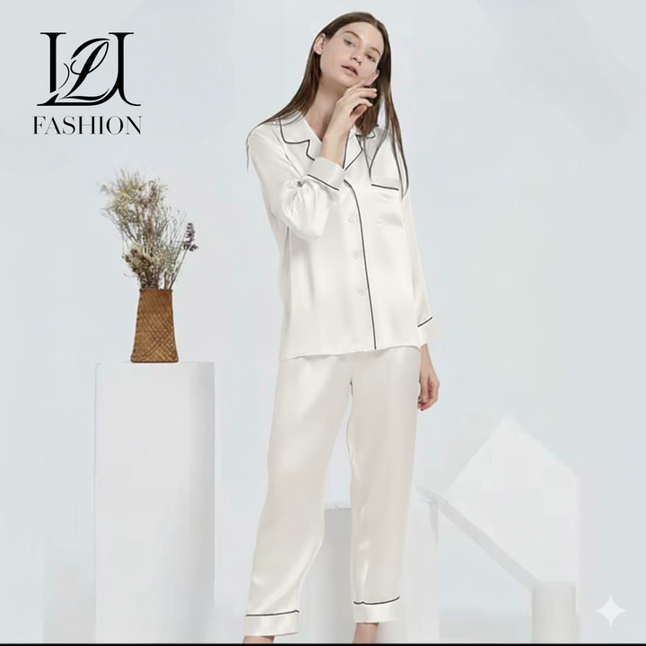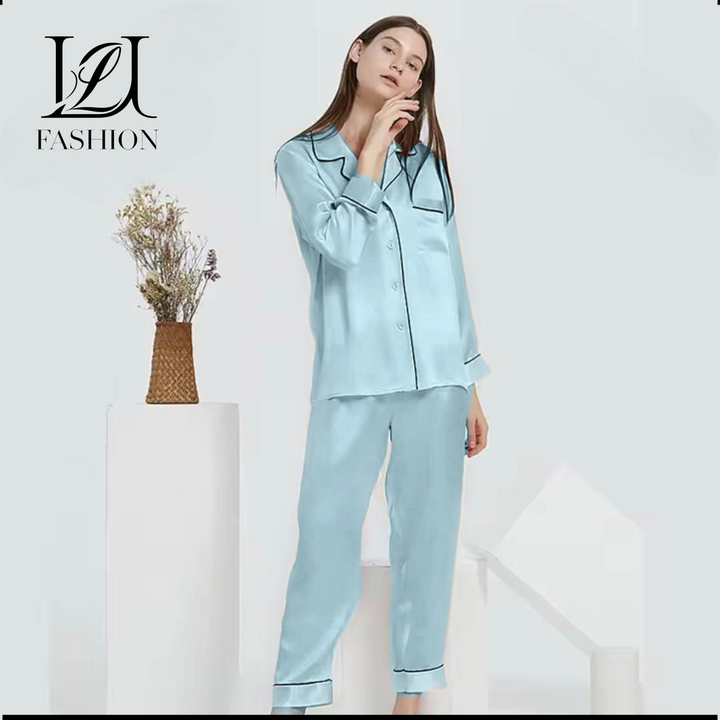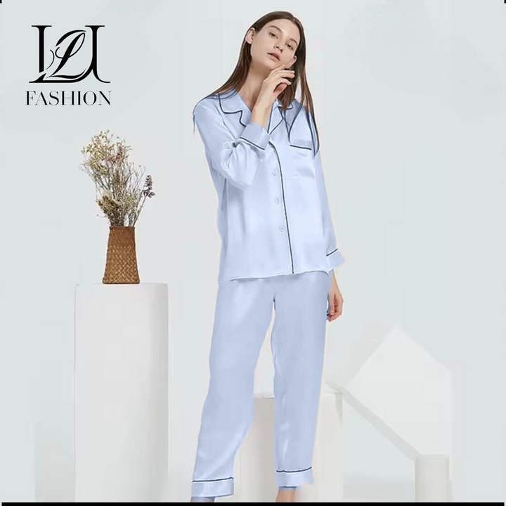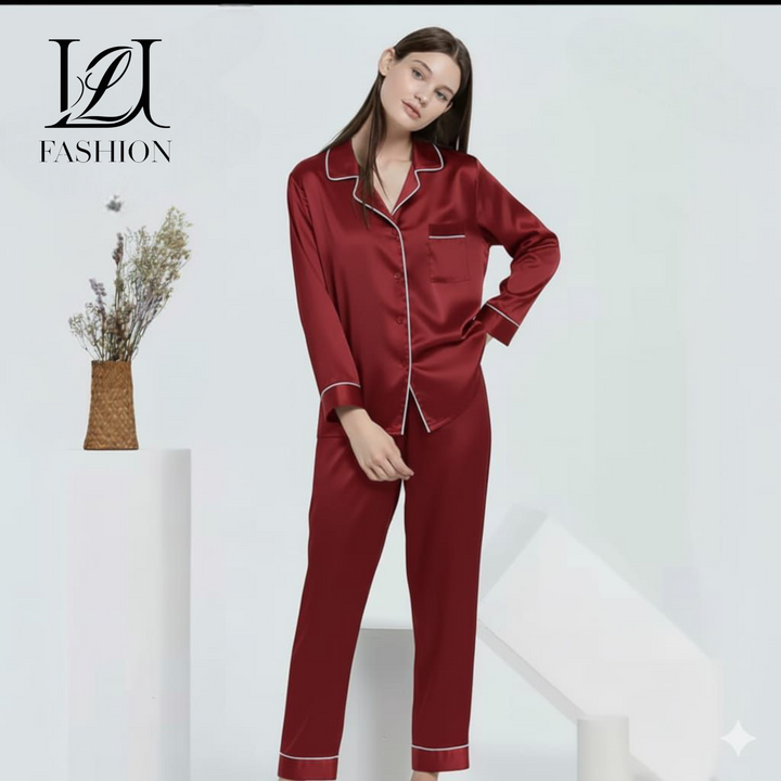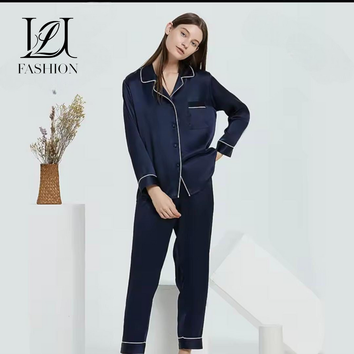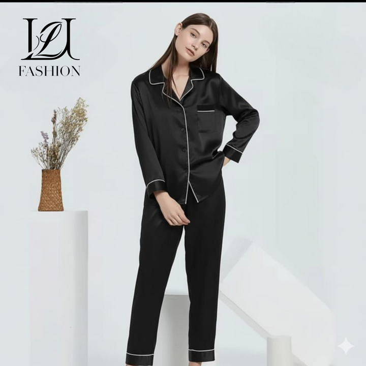 Experience ultimate comfort and elegance with our Luxury Silk Pajama Set featuring refined white piping. Crafted from premium silk, this set offers a smooth, breathable feel that enhances restful sleep while exuding timeless sophistication. The delicate white piping adds a subtle contrast, elevating the classic design for a polished look. Ideal for leisurely evenings or restful nights, this pajama set combines luxurious softness with expert tailoring for a perfect fit and lasting durability. Elevate your loungewear with a blend of style and comfort that speaks to refined taste.