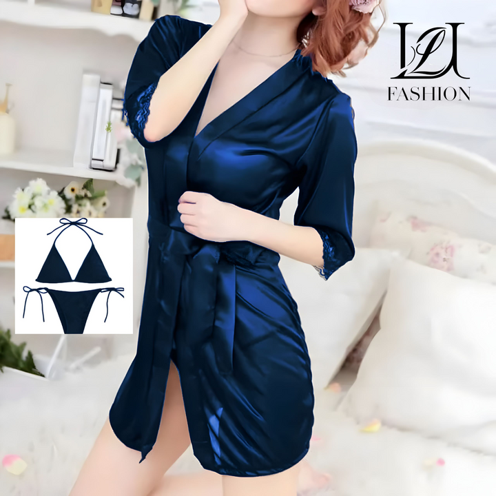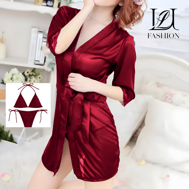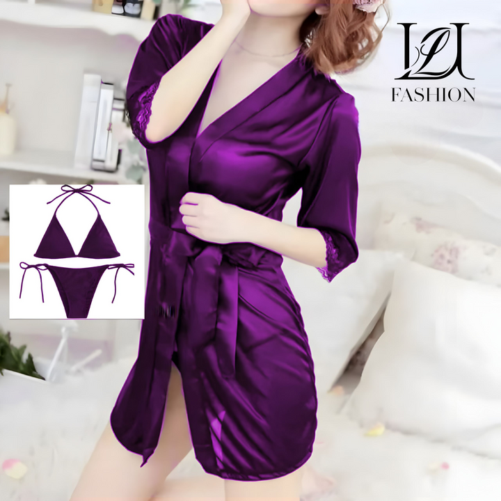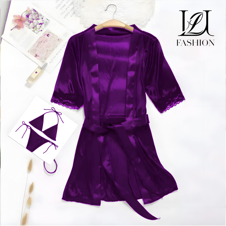Experience elegance and comfort with this Satin Robe & Lingerie Set, crafted from smooth, lightweight satin that feels gentle against your skin. The set combines a luxurious robe with delicate lingerie, offering both style and sophistication. Perfect for relaxing at home or special occasions, it enhances your silhouette while providing effortless wearability. Its refined design and high-quality fabric ensure long-lasting softness and a flattering fit, making it a versatile addition to your wardrobe.